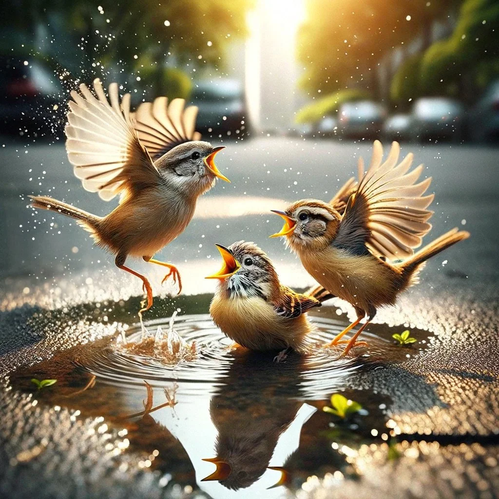 Today in the park, I captured a moment that just felt like the heart of being truly present. The scene was simple but meaningful: little birds, carefree and happy, dabbling by in a puddle, thoroughly enjoying themselves. This simple act of nature holds a mirror to the often overlooked power of being present in the moment, which I find deeply relevant not only to our personal lives but also to leadership and entrepreneurship.